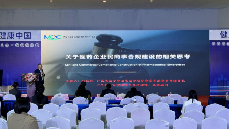 广东省法学会卫生法学研究会常务副会长兼秘书长杜仕林做了“关于医药企业民商事合规建设的相关思考”的主题报告,用案例分享了民事合规面临的多种情况及企业应对策略。
